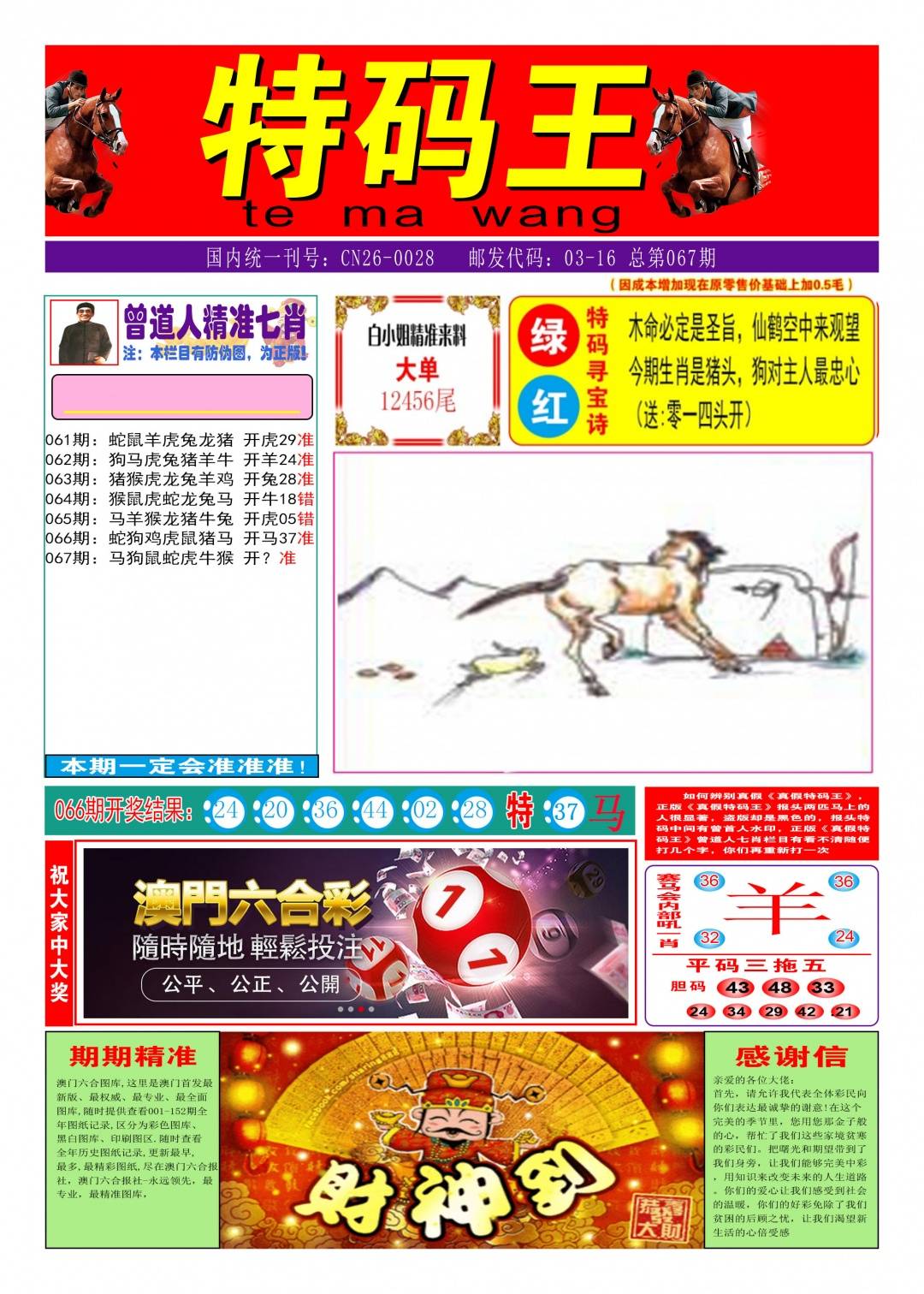 066期:澳门六合宝典平台【八肖24码】开:马37中奖! |